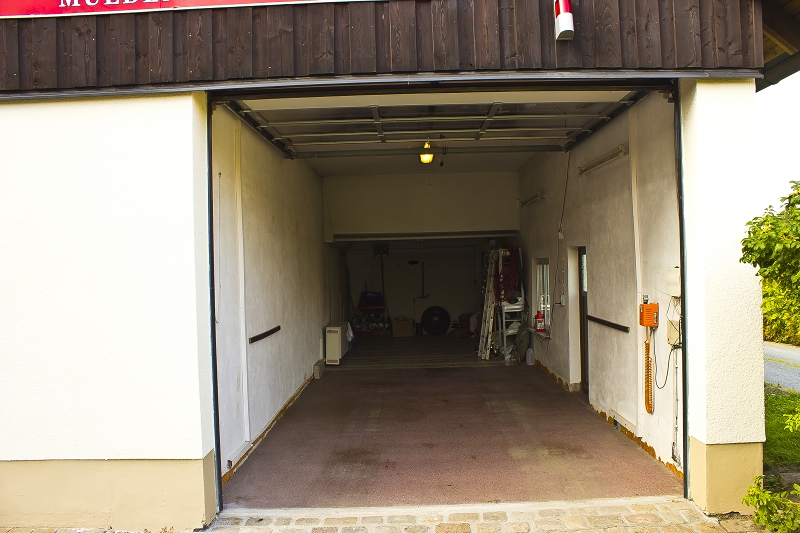 Im Erdgeschoß befindet sich die Fahrzeuggarage für das TSF-W(Z) mit angehängtem Bootstrailer. Dieser Stellplatz ist erreichbar, indem man durch den