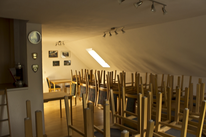 Der Schulungsraum bietet zirka 25 Personen Platz.Angeschlossen an den Schulungsraum ist im Dachraum der Fahrzeughalle ein kleines Wehrleiterbüro und ein Lagerraum integriert. Diese Ebene ist durch eine kleine Treppe zu erreichen.