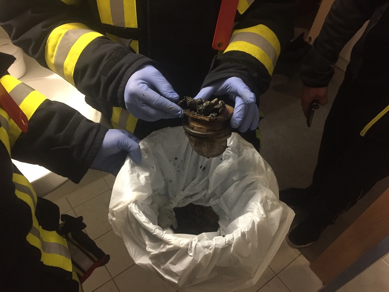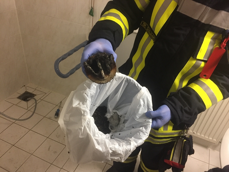Dort brannte es in einem Bewohnerbad. Sofort zueilendes Pflegepersonal konnte die etwa 1 Meter hohe Flamme aus dem Siphon der Dusche bereits beim Eintreffen der Einsatzkräfte löschen. Warum der Abfluss brannte, konnte von den EK nicht abschließend geklärt werden. Beim Entfernen des völlig verbrannten Geruchsverschlusses wurde jedoch eine größer Menge Brandreste und Asche gefunden. Die beiden Bewohner wurden dann von den Einsatzkräften mit dem Personal evakuiert. Eine der Bewohner musste später durch den Rettungsdienst zur Kontrolle ins Krankenhaus verbracht werden. Auch in dem Zimmer unterhalb des Brandherdes wurden die beiden Bewohner in ein anderes Zimmer gebracht, da auch dort der Brandgeruch festgestellt wurde.