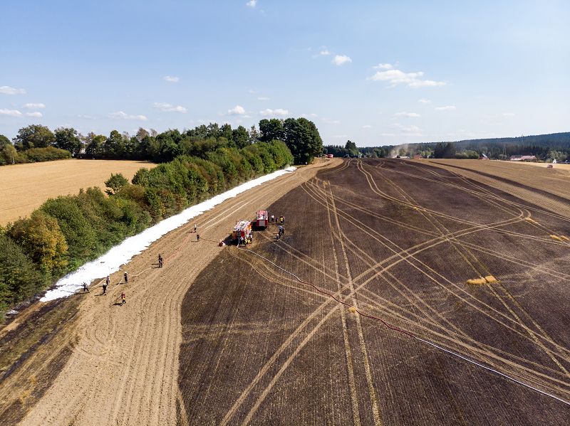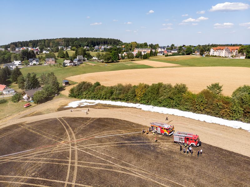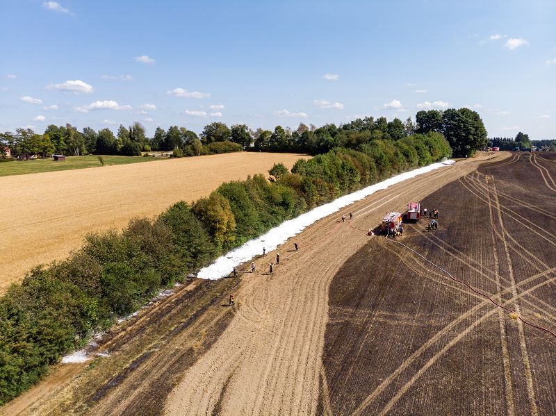 Durch das schnelle Handeln der annähernd 60 Einsatzkräfte von 7 umliegenden Feuerwehren, aber auch der Mitarbeiter des arbeitenden Landwirtschaftsbetriebes konnte Schlimmeres verhindert werden. Die angrenzenden Böschungen wurden zusätzlich zum Schutz vor den Flammen mit einem Schaumteppich geschützt.