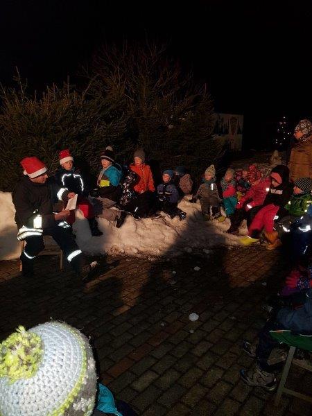 Nach dem Erfolg im letzten Jahr wurde auch dieses Jahr wieder der lebendige Adventskalender in Grünbach durchgeführt, und natürlich war auch die Feuerwehr wieder dabei. Am 23.12. war es dann soweit, wir waren als letzte vor dem Gottesdienst am Heilig Abend an der Reihe. Die kleinen Gäste konnten dabei einer Weihnachtsgeschichte mit Feuerwehrbezug lauschen und wurden mit Feuerwehr-Malbüchern versorgt. Der Höhepunkt für die Kleinen war aber wieder einmal die Rundfahrt mit dem Feuerwehrfahrzeug. Alle Gäste wurden mit Glühwein, Kinderpunsch und Wiener-Würstchen versorgt, während der Grünbacher Posaunenchor für tolle weihnachtliche Stimmung sorgte. Die Resonanz war groß, fast alles wurde alle und das Feuerwehrgelände war voll, sodass ein sehr positives Fazit gezogen werden konnte. Dank gilt an dieser Stelle dem Posaunenchor und den Chef-Organisatoren der Grünbacher Kalenderaktion!