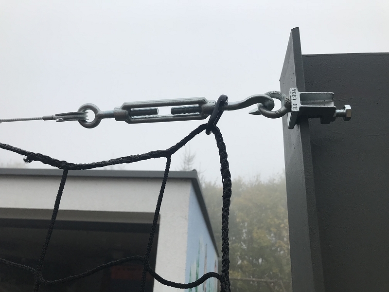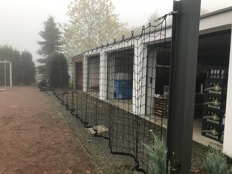 An den Geragen wurde eine weitere Maßnahme zu Ende gebracht. Über den gesamten Sommer liefen Maßnahmen zur errichtung eines Ballfangnetzes zum Schutz der Garagentore. Heute konnte die Arbeit abgeschlossen werden. Stahlträger wurden für das Spannseil einbetoniert und auch das aus Spenden gekaufte Ballfangnetz mit Gewichtseinlageband wurde angepasst und montiert. Es schützt in Zukunft beim Fußball- und Volleyspielen die empfindlichen Garagensektionaltore. Während der Sportnutzung ist das Netz vor die Garagen zu ziehen.