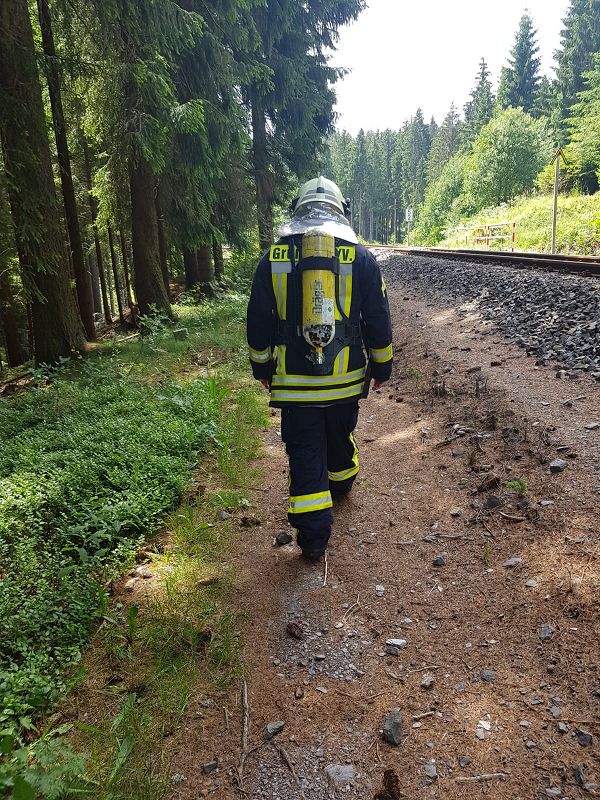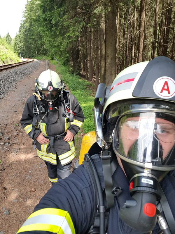 Bei 30 Grad im Schatten hat der Grünbacher Atemschutzgerätewart zur turnusmäßigen Belastungsprobe gerufen. Es ging in die Bastei, einem Grünbacher Wandermekka..., für jene, die kein Atemschutzgeräte und Einsatzkleidung bei sich haben. Aber unser Einsatzkräfte hatten die volle Einsatzbekleidung an. Und so ging es dann vom Göltzschtal hinauf die 250 Stufen bis zum Bahndamm am "Schwarezn Stein".