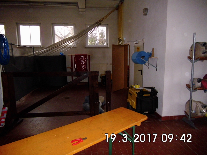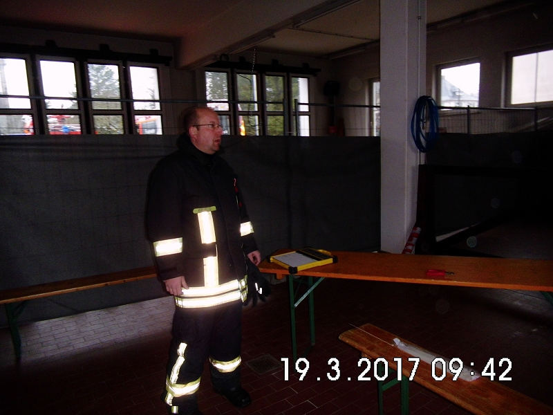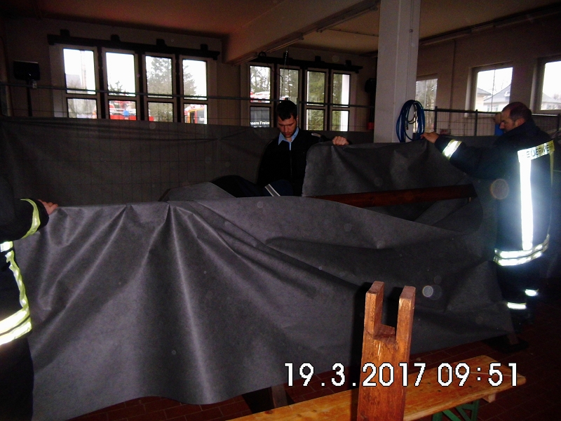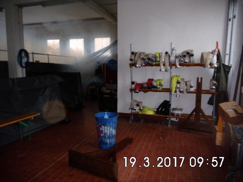 So hatte es sich sicher mancher Atemschutzgeräteträger nicht gedacht, als er die Ausbildungsinhalte des letzten Übungsdienstes von den Atemschutzverantwortlichen erfuhr. Trotz Großbrandeinsatz in Hammerbrücke wurde nur 2 Tage nach dem anspruchsvollen Einsatz, die Belastungsübung nach Atemschutzverordnung durchgeführt. Und die hatte es in sich! Die gesamte Fahrzeughalle wurde zur Atemschutzübungsanlage - mit Bauzäunen umgebaut und vollständig vernebelt. Für die Trupps galt es, einige einsatztaktische Schwerpunkte in den Arbeitsbereichen zu erkennen und umzusetzen.