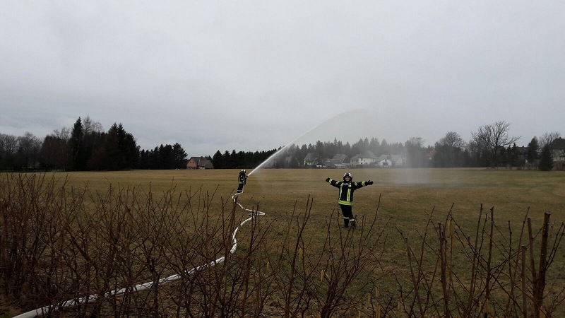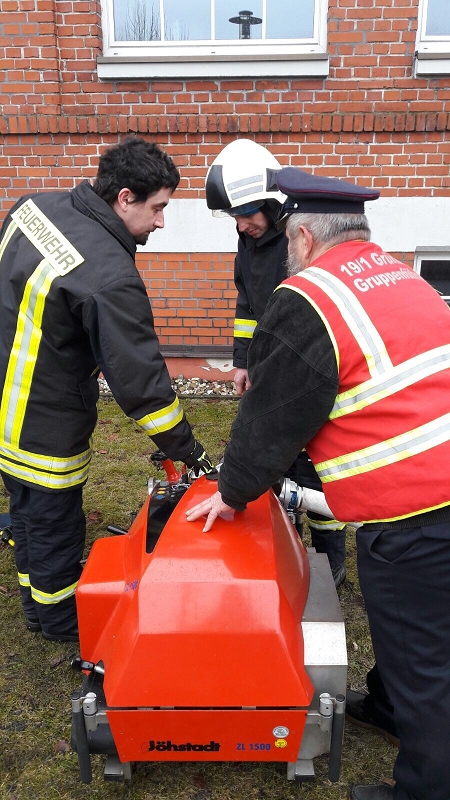 Überwacht wurden die Trupps durch die Wärmebildkamera der eignen Wehr. Eine gelungene Premiere für alle. Für die nicht im Atemschutzeinsatz stehenden Kameraden wurde nach dem langen Winter erstmals im Außengelände des Kispi-Gebäudes geübt. Dabei stand die Löschwassereinspeisung aus dem Tiefbrunnen in das HLF 20 auf dem Ausbildungsplan und auch hier wurden einige Erkenntnisse für die zukünftige Arbeit gewonnen.