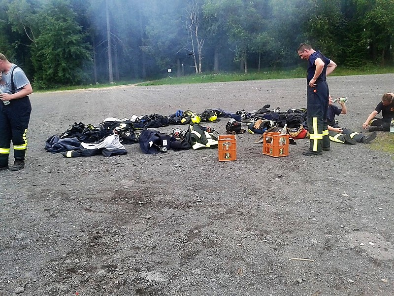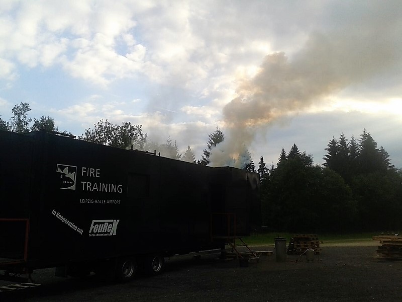 Erstmals konnten vogtländische Feuerwehrkameraden in einem holzgefeuerten Brandcontainer trainieren. Vier Grünbacher Feuerwehrleute erlebten ihre "Feuertaufe" im Trainingsbetrieb und konnten von den Instruktoren der Flughafenfeuerwehr Leipzig/Halle eine Menge über das Verhalten von Feuer lernen und spühren. Mit dabei waren neben 2 Kameraden der Muldenberger Wehr die Kameraden Kern und Kreißl aus Grünbach!