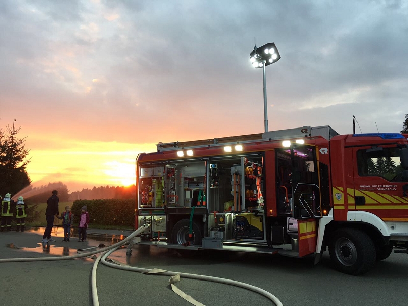 Das Alarmstichwort lautete Brand im Kellergeschoß des Kinderspiel-Vogtland- einer Freizeiteinrichtung der Gemeinde Grünbach mit einer vermissten Person. Alle drei Feuerwehrfahrzeuge der Gemeinde kamen zum Einsatz und entfalteten sich im Raum. Ein Suchtrupp unter Atemschutz wurde durch den Kellereingang der Küche vorgeschickt, ein weiterer Trupp der Ortsfeuerwehr Muldenberg stieß über den Haupteingang zum Brandherd vor, der dieses mal nur durch eine Blitzleuchte simuliert wurde.
