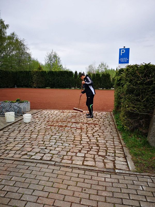 Auf unserem Außengelände wurde unser kombinierter Park- und Volleyballplatz grundhaft auf Vordermann gebracht. Mit einer Spezialmaschine der Gemeinde Ellefeld wurde der Tennenbelag aufgelockert, das Unkraut aufgesammelt und der Platz neu geglättet! Nun sieht er wieder aus wie "NEU" gebaut.