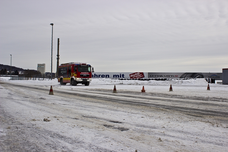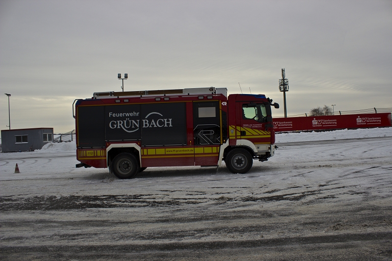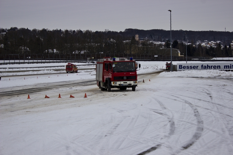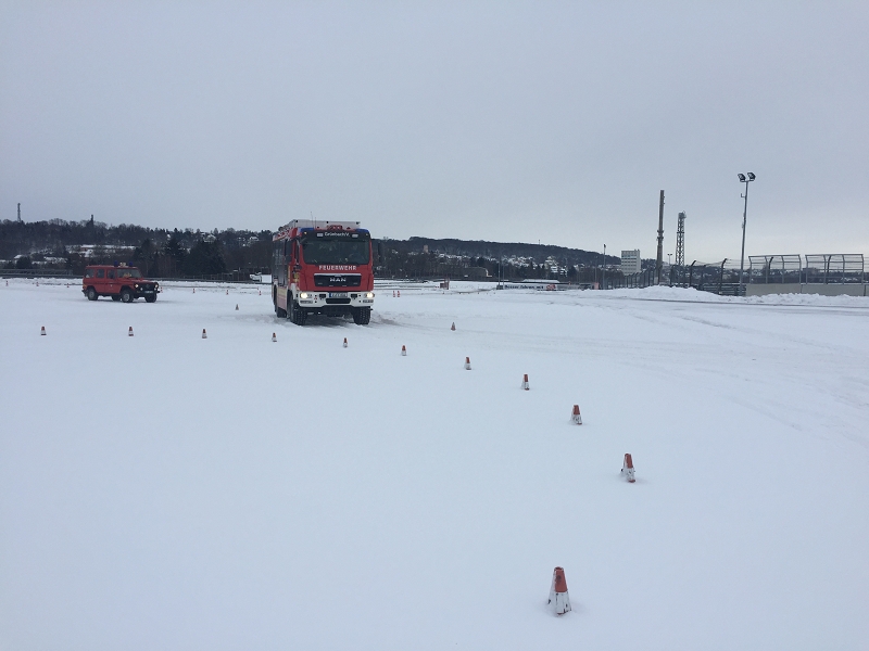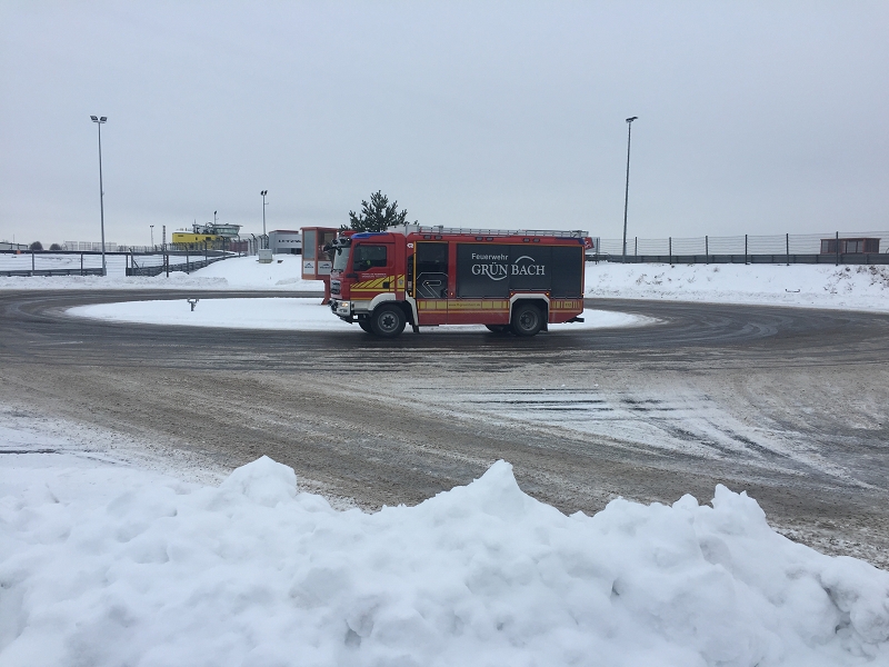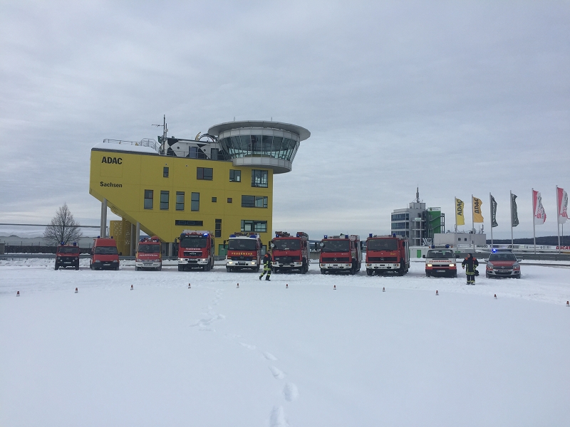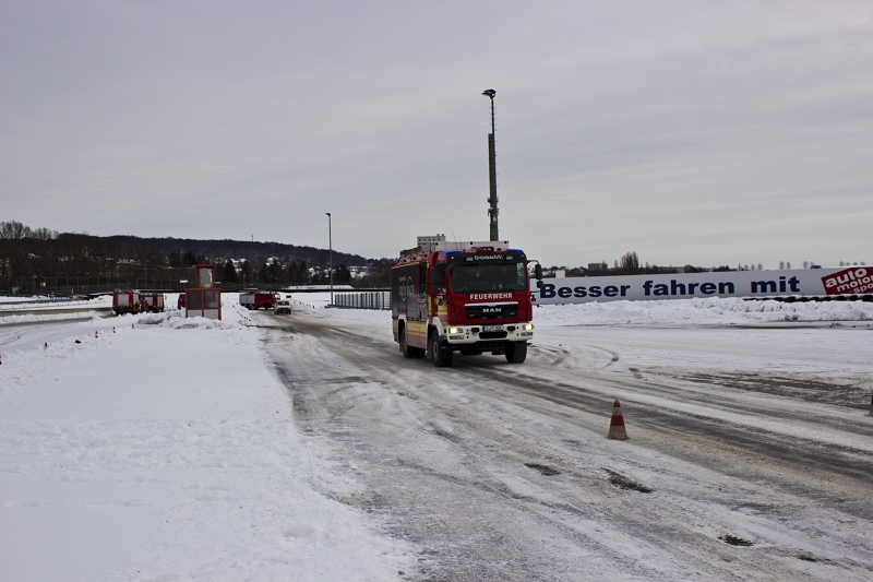 Es war das Gastgeschenk der befreundeten Feuerwehr aus Hohenstein Ernstthal anlässlich der HLF 20 Übergabe im Sommer 2016. Nun wurde es am sächsischen Kraftfahrzeug - Ausbildungszentrum am Sachsenring eingelöst und das bei besten Winterbedingungen! Dabei kann dort das Fahren unter Winter- und Eisbedingung auch in den Sommermonaten perfekt trainiert werden. Vom Sommer war man heute bei minus 10 Grad weit entfernt.