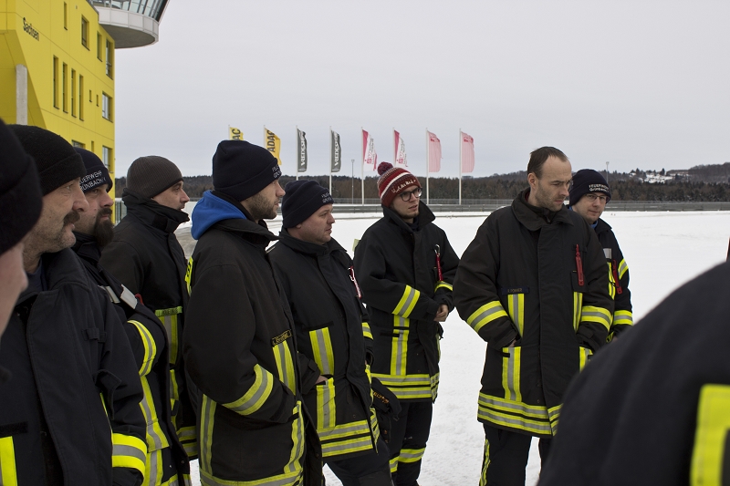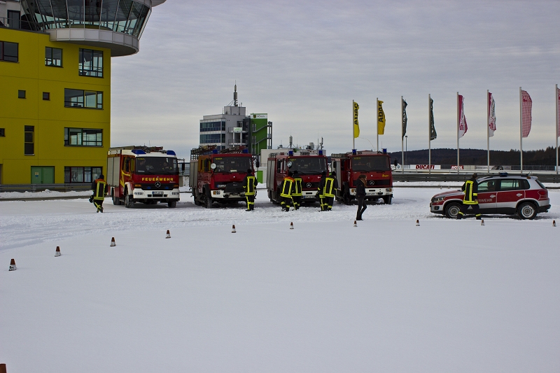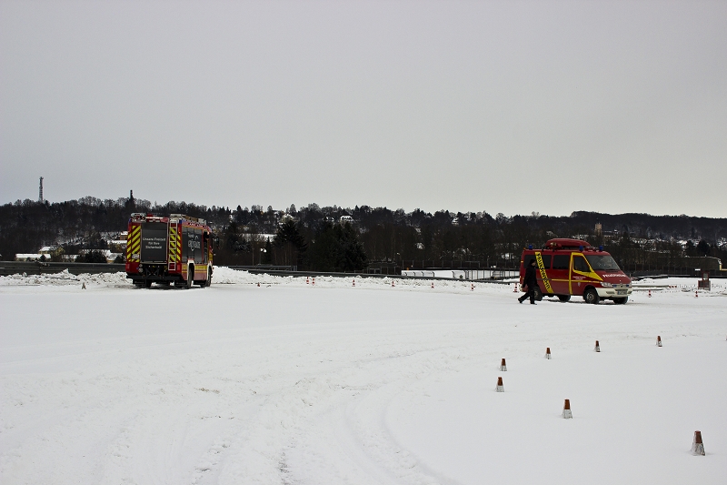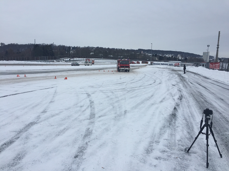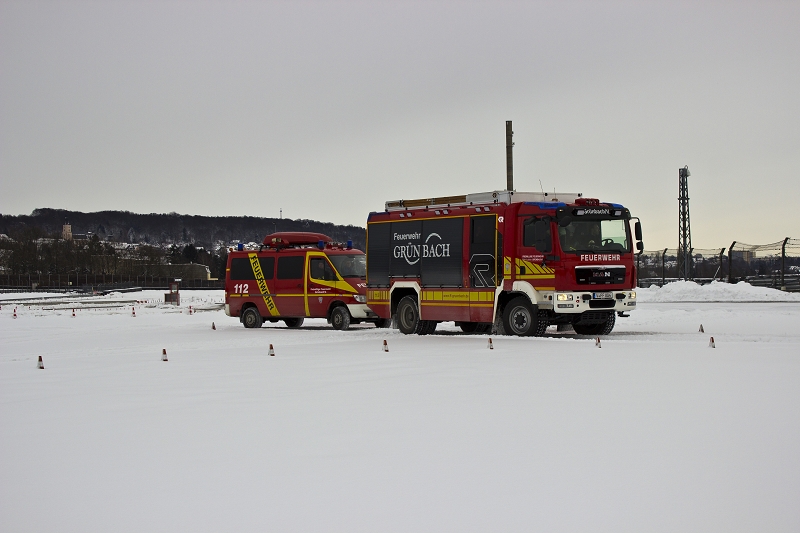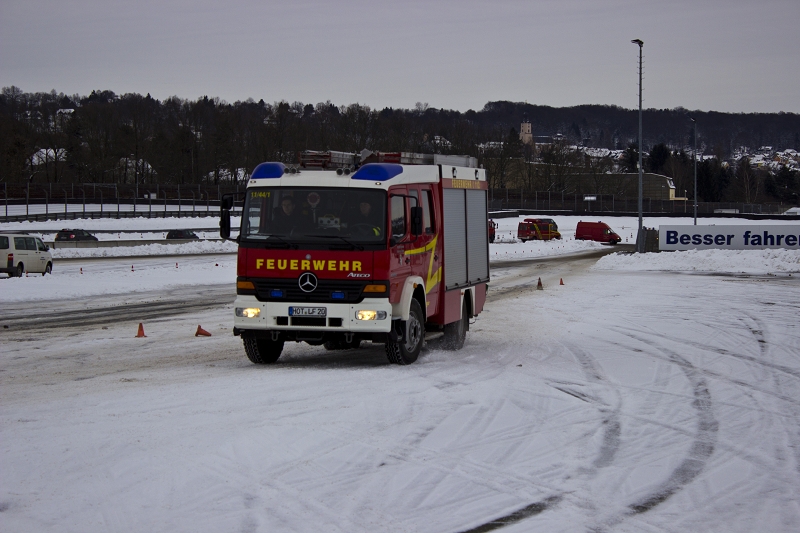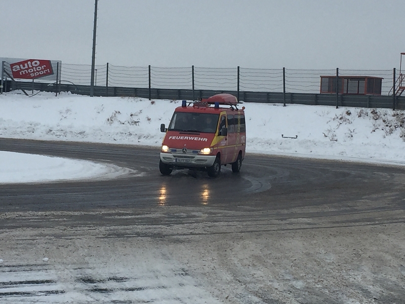 Es war das Gastgeschenk der befreundeten Feuerwehr aus Hohenstein Ernstthal anlässlich der HLF 20 Übergabe im Sommer 2016. Nun wurde es am sächsischen Kraftfahrzeug - Ausbildungszentrum am Sachsenring eingelöst und das bei besten Winterbedingungen! Dabei kann dort das Fahren unter Winter- und Eisbedingung auch in den Sommermonaten perfekt trainiert werden. Vom Sommer war man heute bei minus 10 Grad weit entfernt.