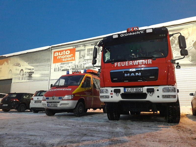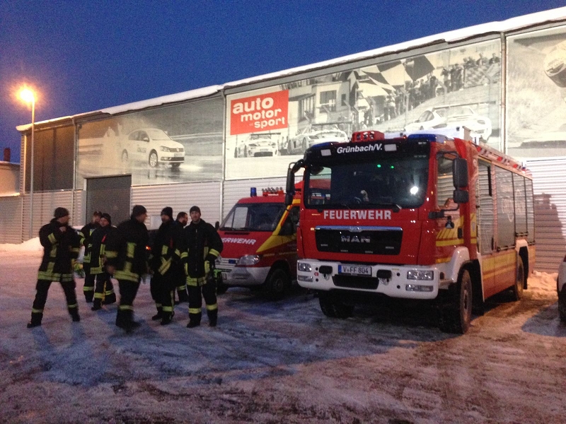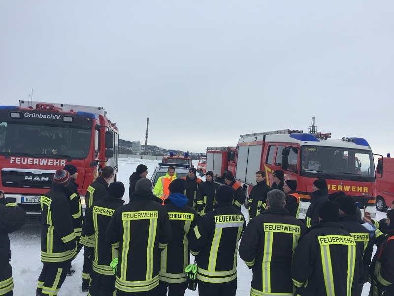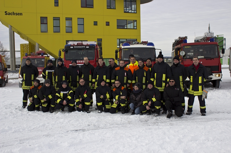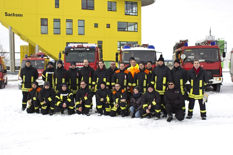 6 Kameraden wurden wurden von der Wehrleitung ausgewählt, meist jene die wenig LKW-Praxis besitzen und nur im Feuerwehralltag auf dem "hohen Bock" sitzen. Auch einige Zuschauer der Grünbacher Wehr machten sich ebenfalls mit auf dem Weg nach Oberlungwitz.