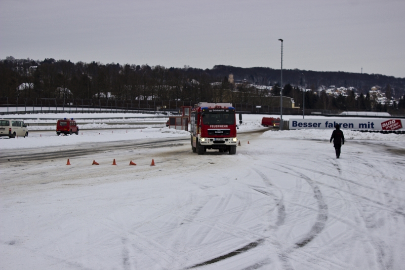 Zum Abschluss des Trainings ging es auf einen Bremskurs bei über 10% Hangneigung. Das Training verlief unfallfrei! Und jeder konnte ein ganzes Stück Gewissheit über die Leistungsfähigkeit seines Löschfahrzeuges gewinnen, Gewissheit aber auch darüber, wie wichtig so mancher elektronische Helfer im Fahrzeug, wie ABS, ESP oder ASR wirklich ist.
