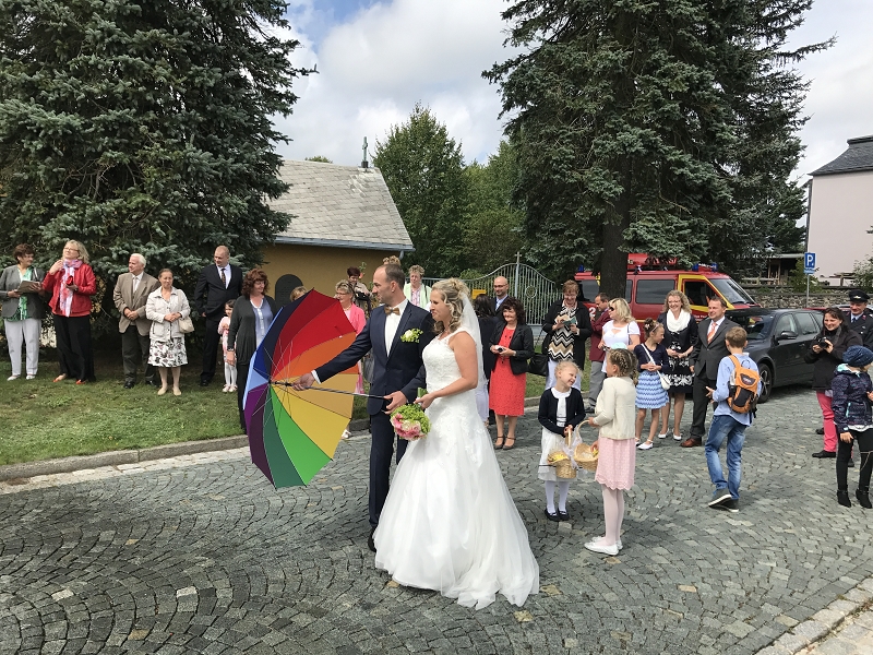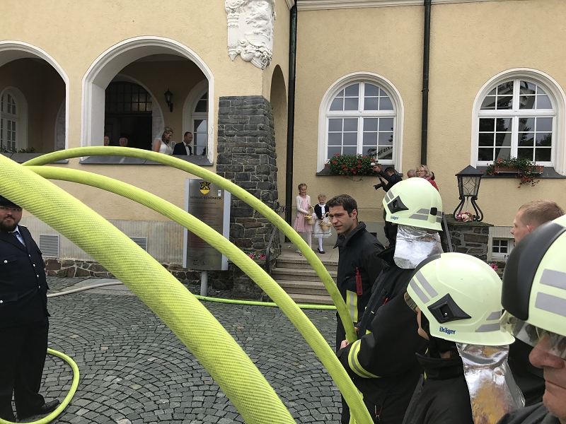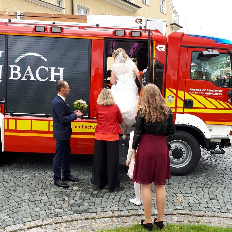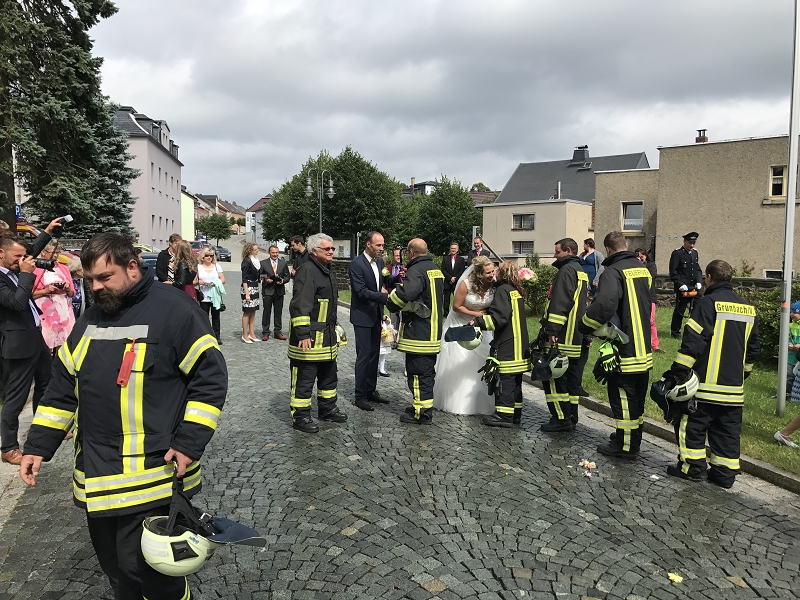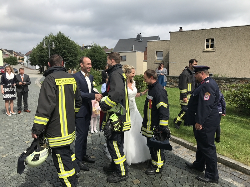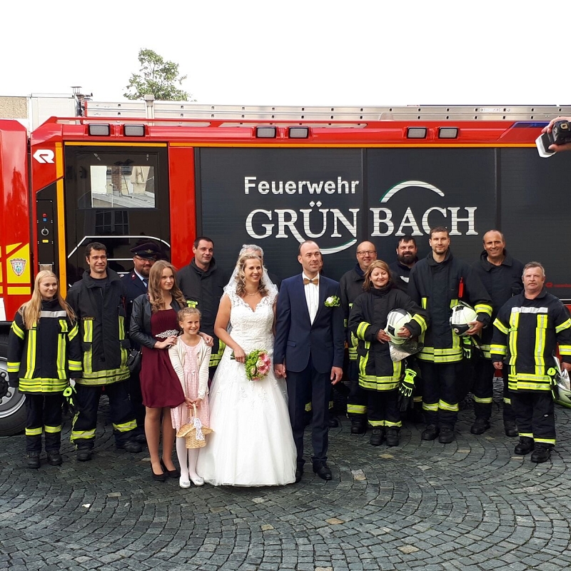 Ronny und Daniela sind ab heute ein Paar und mit ihren beiden Töchtern nun eine Familie mit Trauschein! Ronny wollte das ganze Programm Feuerwehr rund um seine Hochzeit und bekam den Rahmen durch seine Kameradinnen und Kameraden auch würdig präsentiert! Ein nagelneues HLF20 und ein Hubrettungsfahrzeug standen für die beiden bereit.