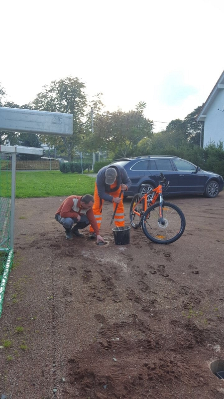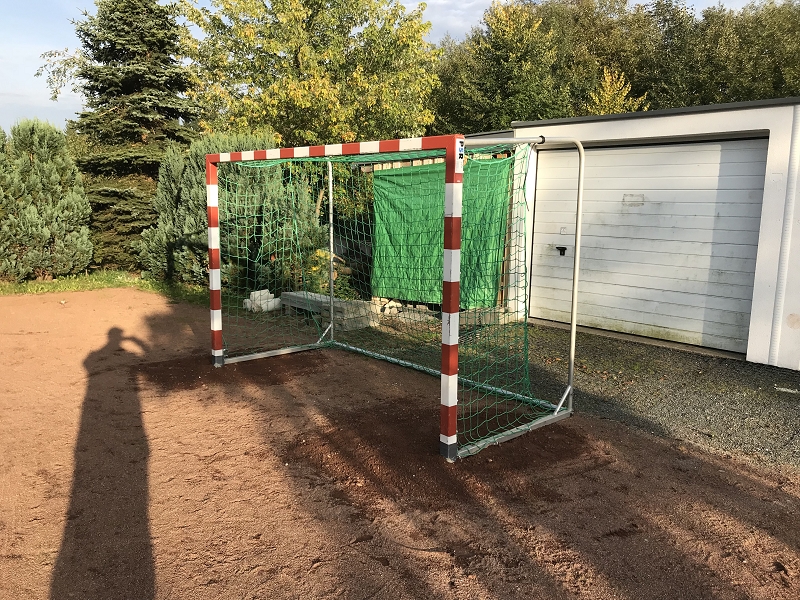 Auch auf dem kombinierten Park- und Volleyballplatz wurde schon seit Monaten gewerkelt. Nach einer Pannne beim Einbau der Fußballtorhülsen kann nun endlich der neue Fußballplatz genutzt werden. Und das, wer sorgsam mit dem Errichteten umgeht, von jederman! Die Tore sind kippgesichert verankert und für den Ganzjahresbetrieb geeignet. Auch das wurde vollumfänglich aus Spenden von Sponsoren beschafft!