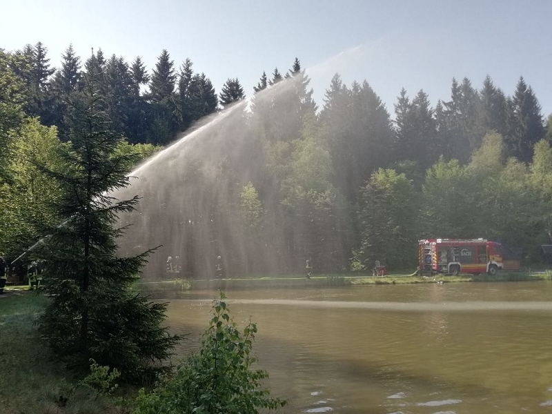 Ein gelungener Einsatzdienst für alle, mit viel neuem Sauerstoff im Fischereigewässer des örtlichen Angelvereins. So haben alle was von dieser Übung!