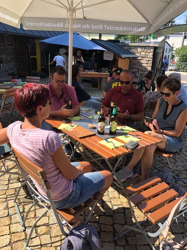 Für alle Vogtländer und natürlich Erzgebirger ein Begriff! Ziel war der Dreiseitenhof der Manufaktur HUSS mit Pension- Selbermach-Werkstatt, Gastronomie und Laden. Frisch gestärkt durch Knacker und Semmel, organisiert von Werner und Beate gings in Raacherkerzelgemenge.