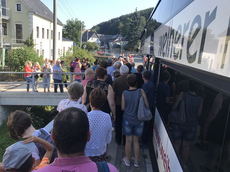 Am frühen Morgen brach der Doppelstockbus mit fast 80 Vereinsmitgliedern mit froher Erwartung in das Erzgebirge auf. Es ging in die Weihrauchkerzen-manufaktur nach Neudorf - sprich es ging zum HUSS!
