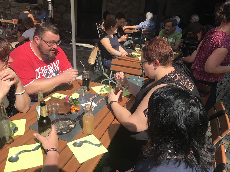 Es ist ein Familienunternehmen, dass zeigte sich auch im Innenhof, wo der Chef noch selbst mit allen Gästen ins Gespräch kommt und stolz berichtet, dass all seine 6 Kinder im Unternehmen arbeiten. So haben wir uns auch gefühlt- wie zu Hause- bei leckerem Essen aus der "Lefflstub" und selbstgemachtem Eis. Nach einem kurzen Abstecher in den Laden der Neudorfer Likörmanufaktur ging es dann wieder gen Heimat.
