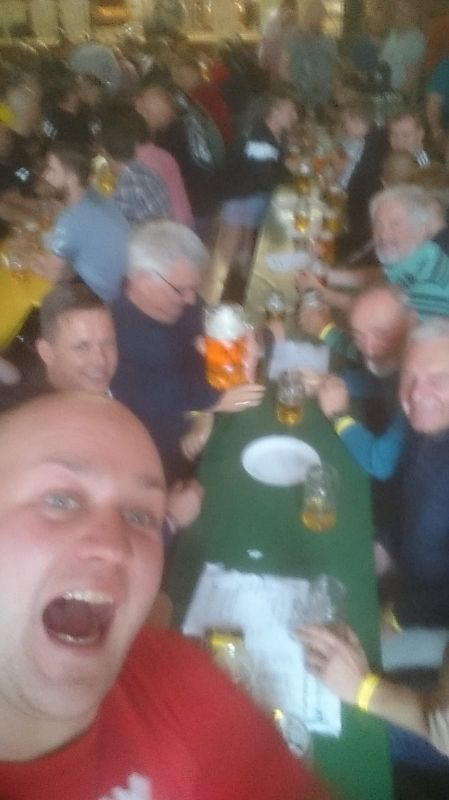 Die Grünbacher Delegation aber schon, auch wenn die Bildqualität etwas anderes vermuten lässt. Nunmehr schon das dritte Jahr ist der Grünbacher Feuerwehrverein Gast im Alten Schloß zu Erlbach um die KIRWE 2019 gemeinsam mit vielen anderen Kimesfans zu beschließen. Rein kommt man da nur mit lange vorbestellten Karten- was für ein Wahnsinn an einem Montag Morgen. Da ruhen sich die Grünbacher zu ihrer Kirmes eigentlich aus, um am Abend noch einmal den Wahnsinn enden zu lassen. Und so mancher Erlbacher ist bestimmt auch dabei!