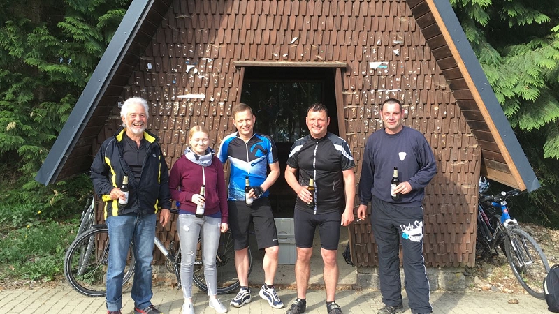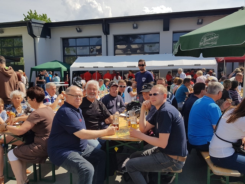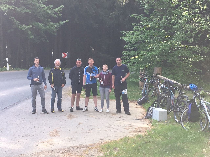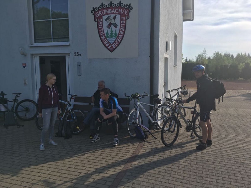 Zur traditionellen Männertags-Fahrradtour brachen auch dieses Jahr wieder 6 unerschrockene Kameraden bei perfekten Wetterbedingungen 8 Uhr nach Markneukirchen auf. Nach zwei kurzen Verpflegungspausen trafen die Kameraden am Vormittag zeitgleich mit dem Begleitfahrzeug in Markneukirchen ein. Dort war erstmals das Ziel die brandneue Feuerwache und nicht mehr das alte Gerätehaus. Dort organisierten die Markneukirchener Kameraden ihren jährlichen Familientag. Bei zünftiger Blasmusik und gutem Essen verbrachten wir kurze Zeit, und auch die neue Feuerwache konnte besichtigt werden. Gegen Mittag war unsere nächste Station der Erlbacher Skihang, ehe wir mit den Rädern wieder Richtung Schöneck aufbrachen. Auf dieser Strecke hatte das Wetter aber kein Erbarmen mehr mit uns, bei Regen mussten die Räder auf das Begleitfahrzeug geladen werden. So wurden die letzten beiden Ziele mit dem Fahrzeug angefahren, welche hießen: Kottenheide und das Muldenberger Flößerfest. Bei letzterem wurden traditionell auch unsere Muldenberger Kameraden am Gerätehaus besucht un der ein oder andere Schwatz gehalten. 18 Uhr hieß es dann Treff mit den Daheim gebliebenen im Bayerischen Hof Grünbach, in dem bei einem Abendessen und Hausbräu der Abend beschlossen wurde.