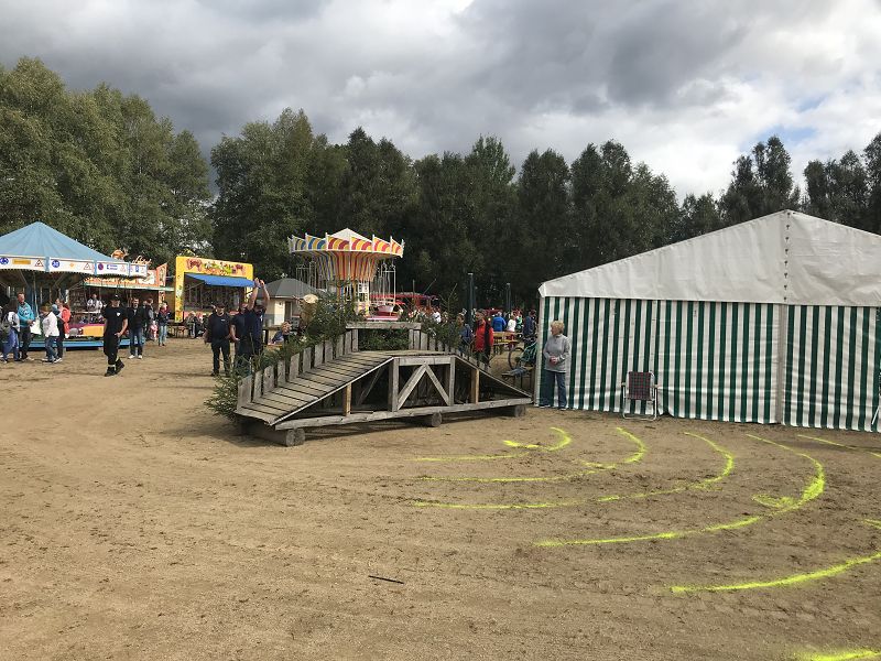 Und wie immer zur Hammerbrücker Kirmes, wird in einem "Tod-ernsten Wettkampf" der Hammer über die Brücke geschleudert.