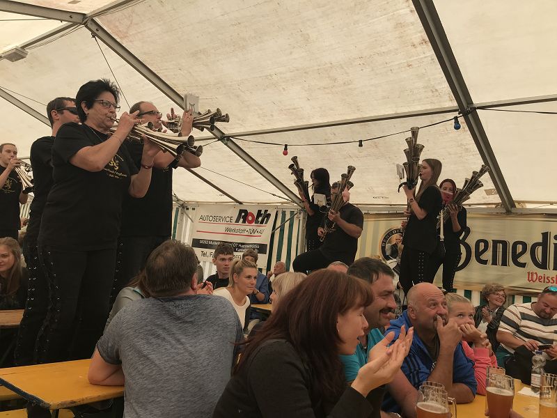 Die Auerbacher Schallmeien rockten im Anschluss das Bierzelt durch und testeten die Bierzeltgarnituren auf ihre Festigkeit. Ein toller Sonntag-Vormittag ging zu Ende! Danke den Hammerbrücker Kameraden für die Gastfreundschaft!