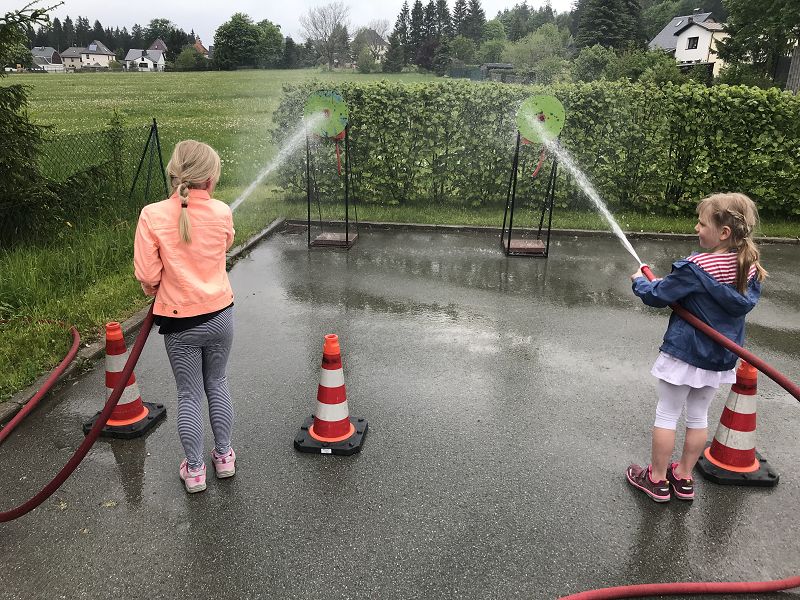 Das KISPI in Grünbach feiert seinen 15. Geburtstag und viele Gäste kamen. Da durfte natürlich die Grünbacher Feuerwehr nicht fehlen! Die Männer und Frauen des KISPI-Organisationteams hatten für diesen Samstag alle Register gezogen. Ein rießiger Truck stand als Hüpfburg "verkleidet" im Außengelände. Neben einer Torwand und einem Klettspiel konnten die Kinder bei der Feuerwehr ihr Zielvermögen mit einem richtigen Strahlrohr testen.