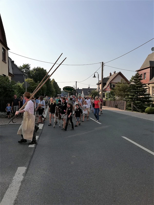 Beim Festumzug aller Vereine beteiligten sich trotz aller Schweißperlen auf der Stirn alle! Am Festplatz angekommen, knallten die Donnerkanonen ehe der Schriftführer des Feuerwehrvereins Klaus Körner die Eröffnungsrede mit dem Bürgermeister Ralf Kretzschmann vortrugen konnten.