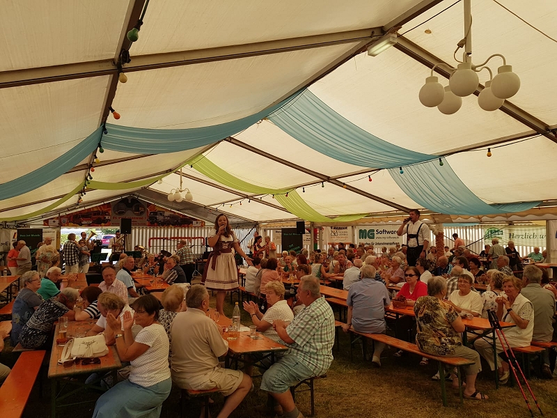 Zur Blasmusik der Band "Die Böhmischen Vogtländer" wagten sich einige Fans , trotz großer Wärme auf den Tanzboden. Und nachdem der Kuchenabsatz am Samstag schleppend lief und am Sonntag eine neue Ladung an leckeren frisch gebackenen Kuchen anrollten, hatten manche Kuchenverkäufer schon Sorgenfalten auf Grund des übervollen Kühlcontainers. Am Ende war alles ausverkauft! Riesen herzlichen Dank den Bäckern, den Verkäufern und vor allem den Käufern!