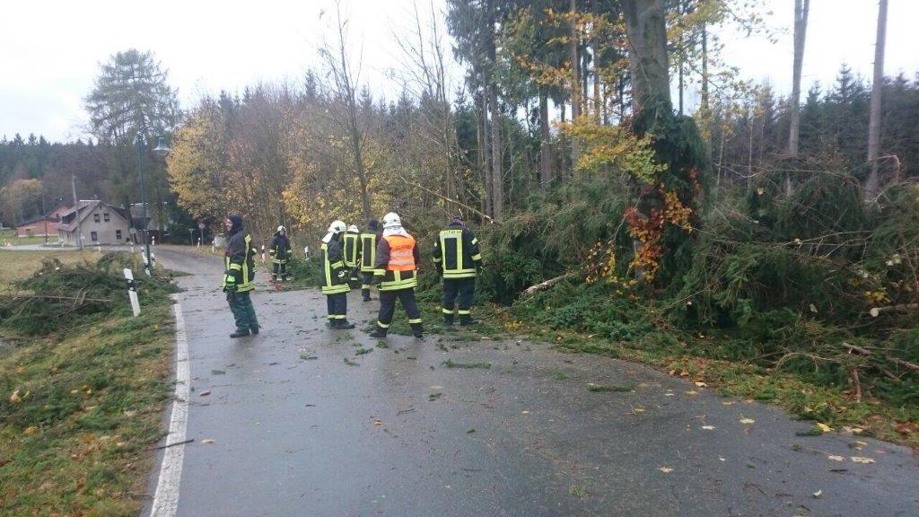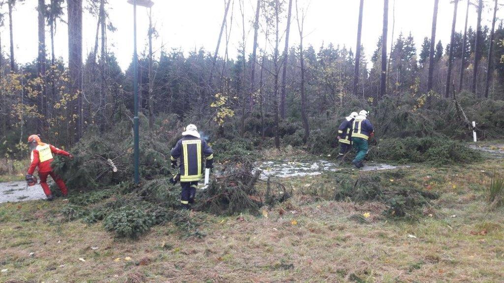 Sturmtief Herwart sorgte an diesem Morgen für Chaos in weiten Teilen des Landkreises. Für uns begann die Beseitigung der Auswirkungen um 7:55 Uhr mit einer Alarmierung in die Ortslage Siehdichfür. Der Ortsteil war durch umgestürzte Bäume komplett abgeschnitten. Aufgrund der noch vorherrschenden Orkanböen beschränkten wir uns aber vorerst auf das nötigste, und schnitten nur die notwendigsten Teile der Bäume weg, um die Durchfahrt für Rettungsfahrzeuge zu ermöglichen. Die Restberäumung wurde dann am Nachmittag nach abflauen des Windes durch die Besatzung des HLF durchgeführt.