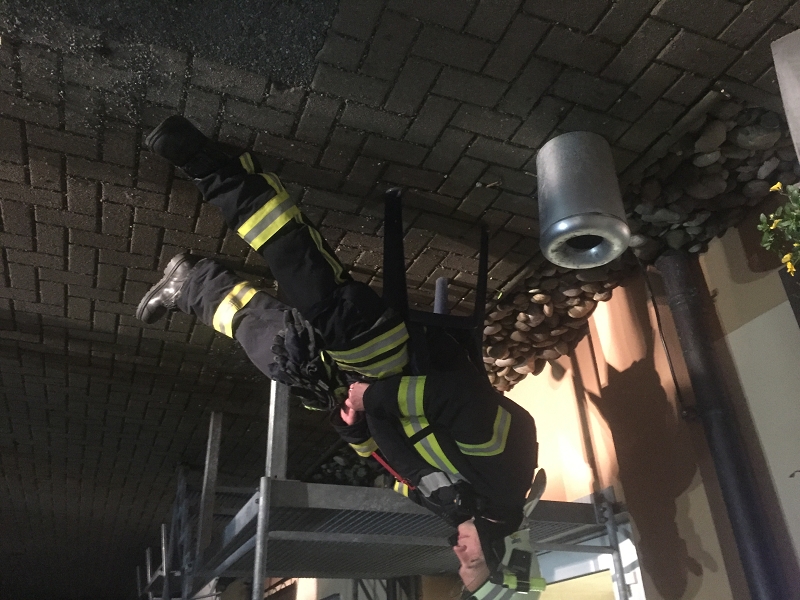 Einige Zeit machte eine leicht erwärmte Decke Sorge, die durch die Wärmebildkamera aufgespürt wurde. Der Verdacht eines Schwelbrandes lag nahe. Nach einiger Zeit verringerte sich jedoch die Temperatur der Betondecke und auch hier konnte dann Entwarnung gegebene werden.