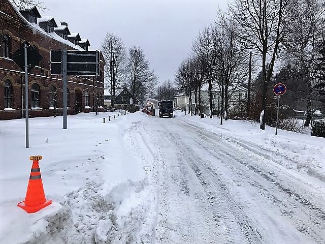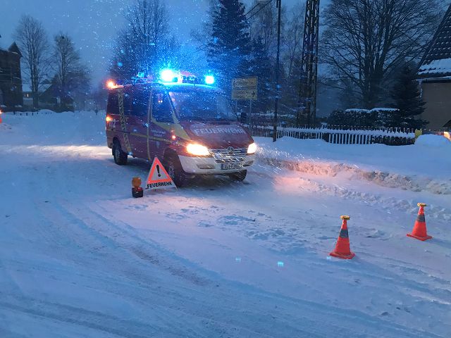 Wehrleiter-Stellvertreter Kamerad Pöhler hat für die erste Schicht insgesamt 4 Kameraden eingeteilt. Zwei Kameraden fuhren Schneepflug und LKW, die beiden anderen sperrten Abschnittsweise die Straße um das An- und Abfahren der LKW`s und den Schneefräsenbetrieb durch den Ort überhaupt zu ermöglichen. Auch Bürgermeister Ralf Kretzschmann zeigt Flagge und stand den ganzen Tag mit den Kameraden auf den Straße und sorgte mit dafür, dass alles reibungslos verlief.