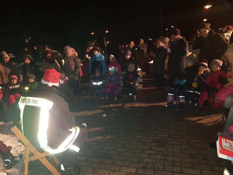 Nach dem Erfolg im letzten Jahr wurde auch dieses Jahr wieder der lebendige Adventskalender in Grünbach durchgeführt, und natürlich war auch die Feuerwehr wieder dabei. Am 23.12. war es dann soweit, wir waren als letzte vor dem Gottesdienst am Heilig Abend an der Reihe. Die kleinen Gäste konnten dabei einer Weihnachtsgeschichte mit Feuerwehrbezug lauschen und wurden mit Feuerwehr-Malbüchern versorgt. Der Höhepunkt für die Kleinen war aber wieder einmal die Rundfahrt mit dem Feuerwehrfahrzeug. Alle Gäste wurden mit Glühwein, Kinderpunsch und Wiener-Würstchen versorgt, während der Grünbacher Posaunenchor für tolle weihnachtliche Stimmung sorgte. Die Resonanz war groß, fast alles wurde alle und das Feuerwehrgelände war voll, sodass ein sehr positives Fazit gezogen werden konnte. Dank gilt an dieser Stelle dem Posaunenchor und den Chef-Organisatoren der Grünbacher Kalenderaktion!