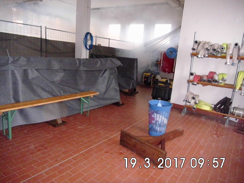 So hatte es sich sicher mancher Atemschutzgeräteträger nicht gedacht, als er die Ausbildungsinhalte des letzten Übungsdienstes von den Atemschutzverantwortlichen erfuhr. Trotz Großbrandeinsatz in Hammerbrücke wurde nur 2 Tage nach dem anspruchsvollen Einsatz, die Belastungsübung nach Atemschutzverordnung durchgeführt. Und die hatte es in sich! Die gesamte Fahrzeughalle wurde zur Atemschutzübungsanlage - mit Bauzäunen umgebaut und vollständig vernebelt. Für die Trupps galt es, einige einsatztaktische Schwerpunkte in den Arbeitsbereichen zu erkennen und umzusetzen.