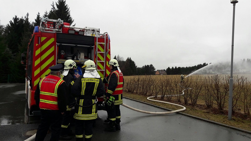 Überwacht wurden die Trupps durch die Wärmebildkamera der eignen Wehr. Eine gelungene Premiere für alle. Für die nicht im Atemschutzeinsatz stehenden Kameraden wurde nach dem langen Winter erstmals im Außengelände des Kispi-Gebäudes geübt. Dabei stand die Löschwassereinspeisung aus dem Tiefbrunnen in das HLF 20 auf dem Ausbildungsplan und auch hier wurden einige Erkenntnisse für die zukünftige Arbeit gewonnen.