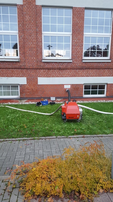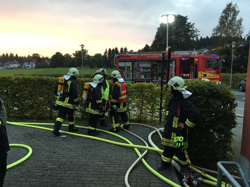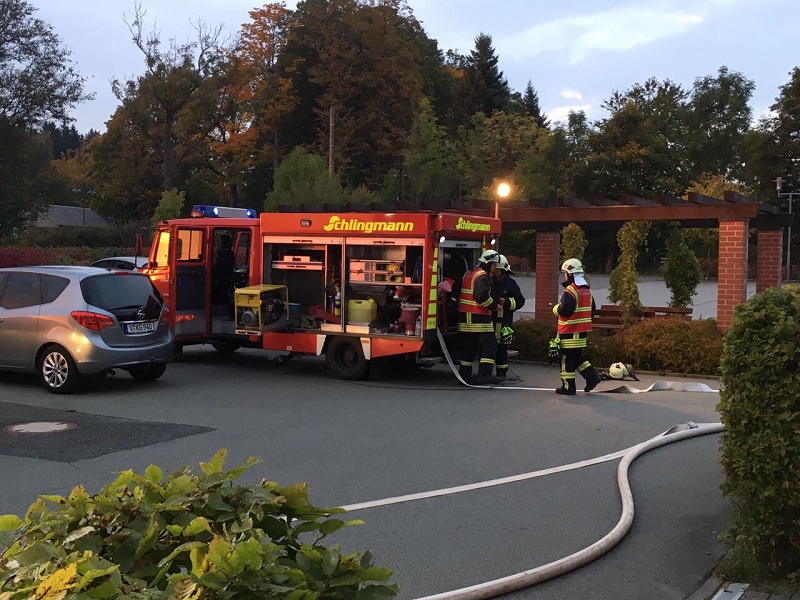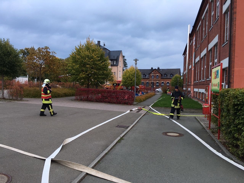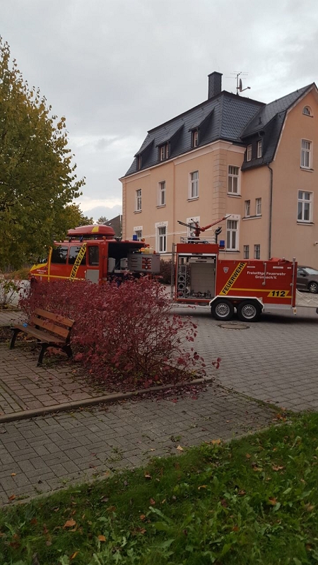 Das Alarmstichwort lautete Brand im Kellergeschoß des Kinderspiel-Vogtland- einer Freizeiteinrichtung der Gemeinde Grünbach mit einer vermissten Person. Alle drei Feuerwehrfahrzeuge der Gemeinde kamen zum Einsatz und entfalteten sich im Raum. Ein Suchtrupp unter Atemschutz wurde durch den Kellereingang der Küche vorgeschickt, ein weiterer Trupp der Ortsfeuerwehr Muldenberg stieß über den Haupteingang zum Brandherd vor, der dieses mal nur durch eine Blitzleuchte simuliert wurde.