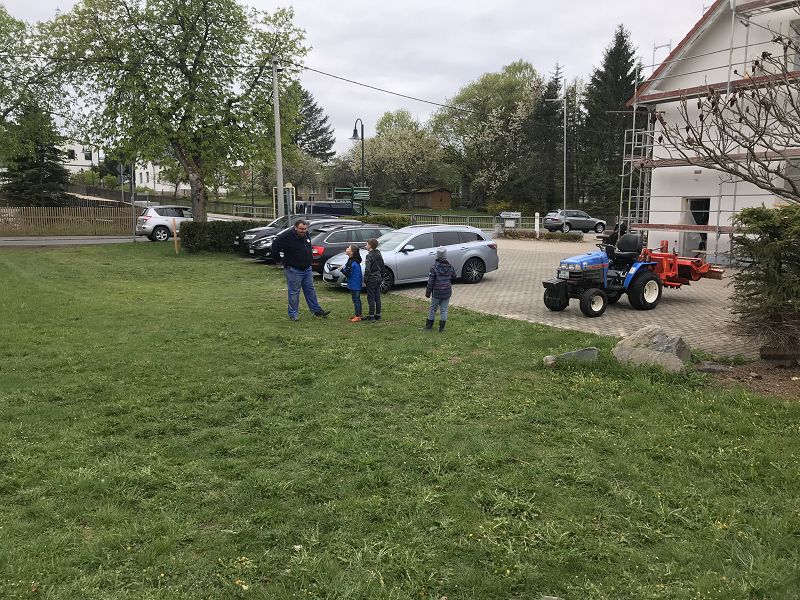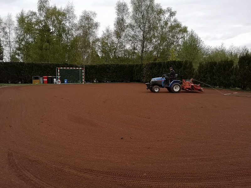 Auf unserem Außengelände wurde unser kombinierter Park- und Volleyballplatz grundhaft auf Vordermann gebracht. Mit einer Spezialmaschine der Gemeinde Ellefeld wurde der Tennenbelag aufgelockert, das Unkraut aufgesammelt und der Platz neu geglättet! Nun sieht er wieder aus wie "NEU" gebaut.