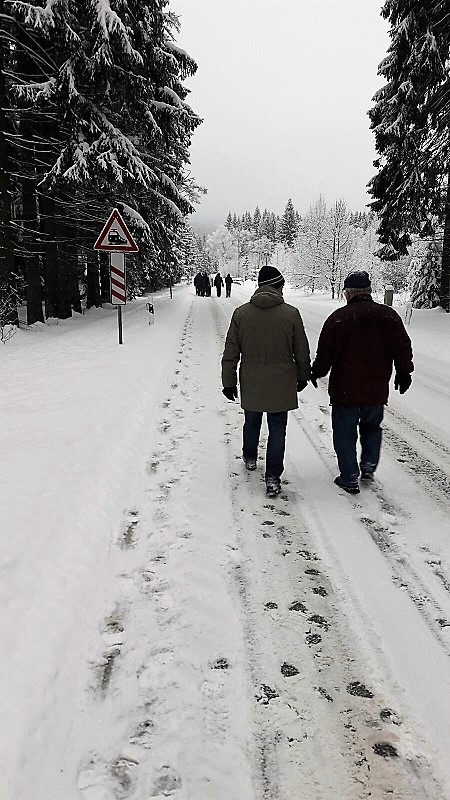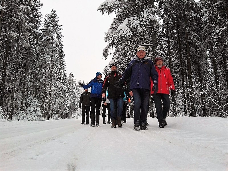 Doch zunächst ging es auf die rund 6,5 Kilometer lange Wanderschaft für die meisten der Feuerwehrleute durch eine traumhaft verschneite Winterlandschaft. Bemerkenswert war - es wanderten fast mehr Altkameraden, wie Aktive!