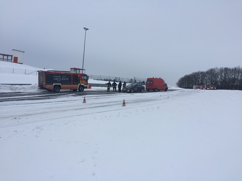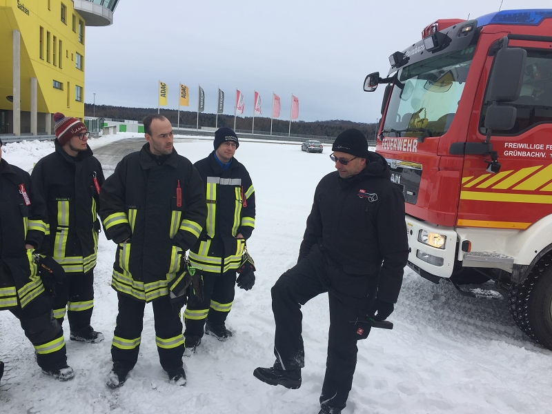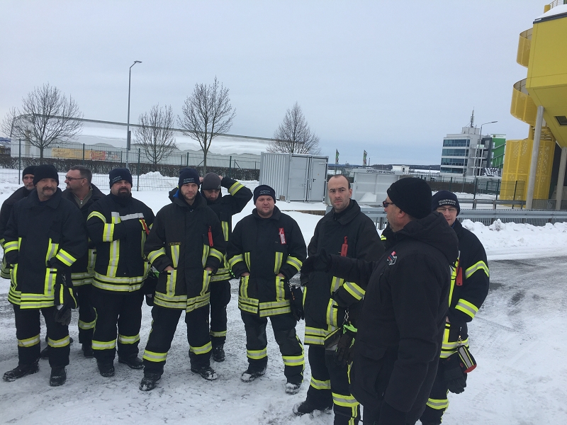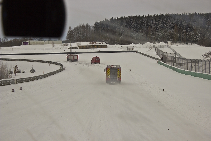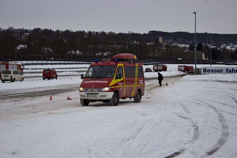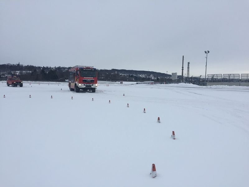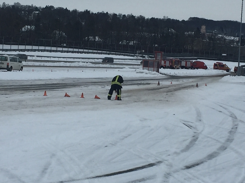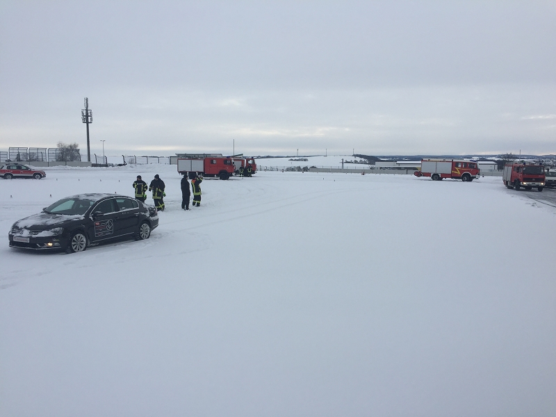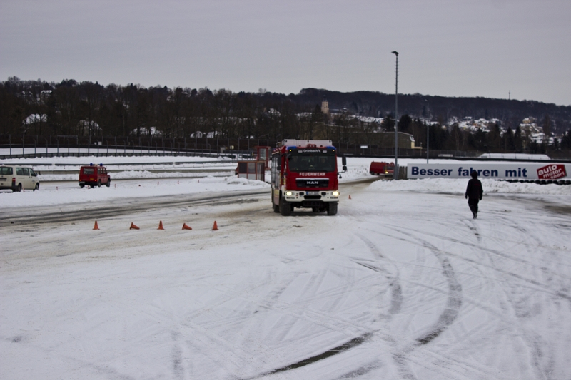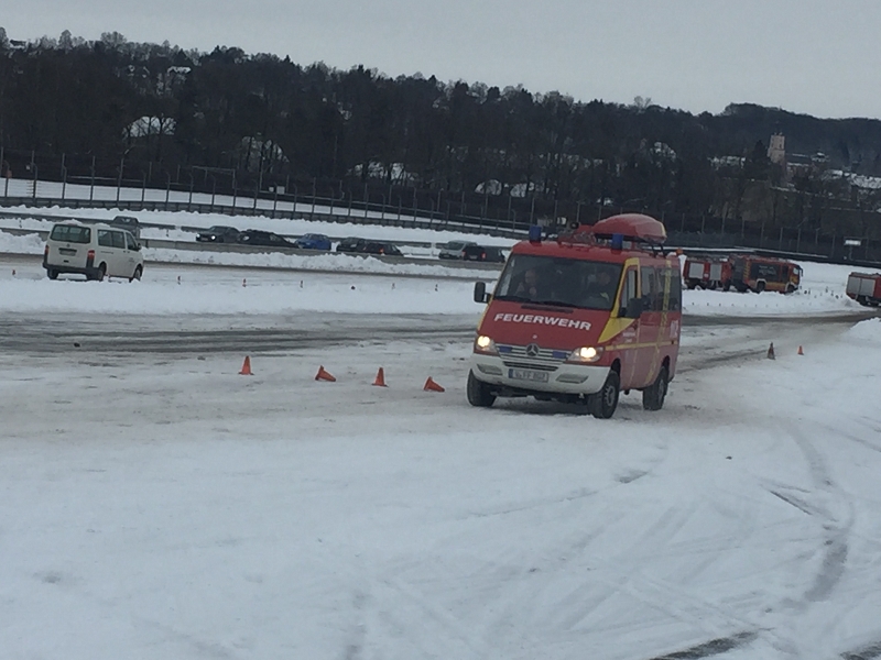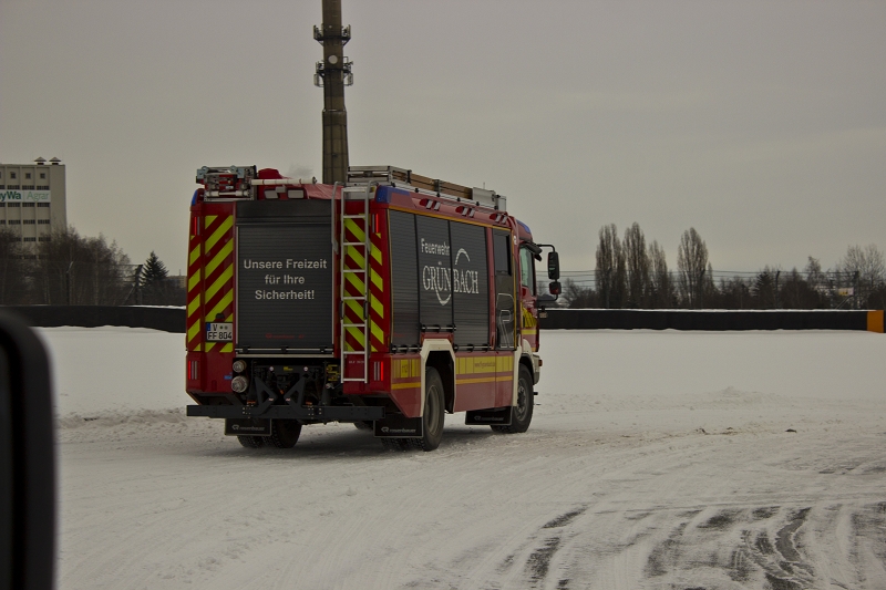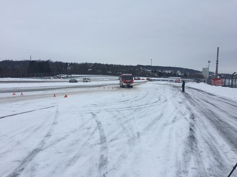 Es war das Gastgeschenk der befreundeten Feuerwehr aus Hohenstein Ernstthal anlässlich der HLF 20 Übergabe im Sommer 2016. Nun wurde es am sächsischen Kraftfahrzeug - Ausbildungszentrum am Sachsenring eingelöst und das bei besten Winterbedingungen! Dabei kann dort das Fahren unter Winter- und Eisbedingung auch in den Sommermonaten perfekt trainiert werden. Vom Sommer war man heute bei minus 10 Grad weit entfernt.