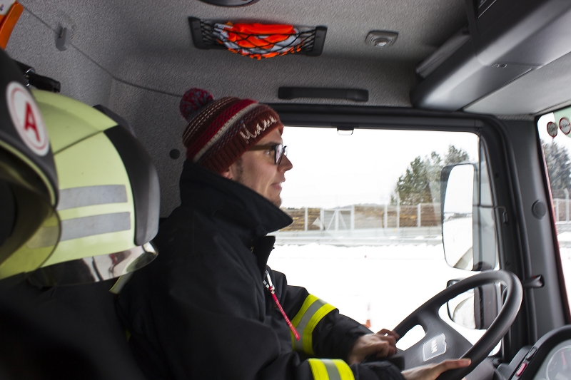 Beginn des Trainings war zunächst eine theoretische Einweisung in die Praxis des LKW-Fahrens. Untersteuern, Übersteuern, Bremsen und Hangabtriebskräfte- all das Wissen wurde durch den Instruktor Sven Förster wieder einmal aufgefrischt. Förster, selbst Feuerwehrmann und im Beruf bei der Autobahnpolizei,hatte den richtigen Ton im Umgang mit den Maschinisten auf ihren roten Fahrzeugen. Nach einem Bremstraining, ging es in einen Slalomkurs, dann zum Ausweichtraining, ehe jeder die Fliehkräfte seines Fahrzeuges beim Kreisfahren ausreizen konnte.