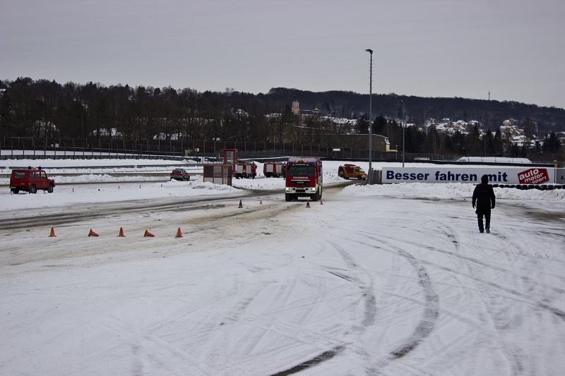 Zum Abschluss des Trainings ging es auf einen Bremskurs bei über 10% Hangneigung. Das Training verlief unfallfrei! Und jeder konnte ein ganzes Stück Gewissheit über die Leistungsfähigkeit seines Löschfahrzeuges gewinnen, Gewissheit aber auch darüber, wie wichtig so mancher elektronische Helfer im Fahrzeug, wie ABS, ESP oder ASR wirklich ist.