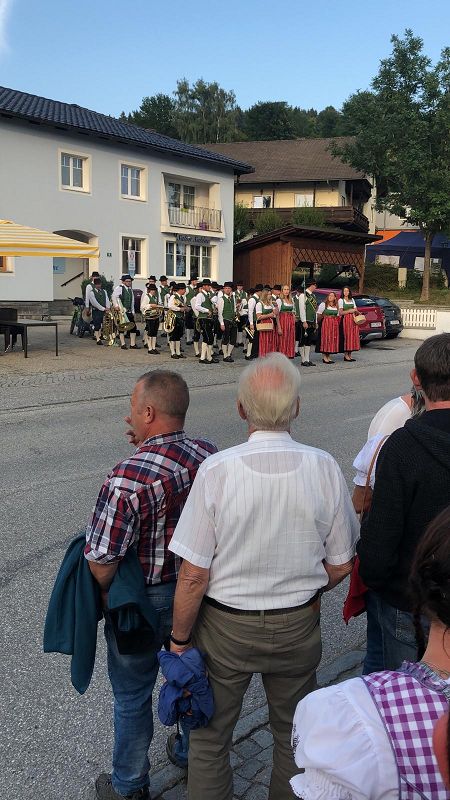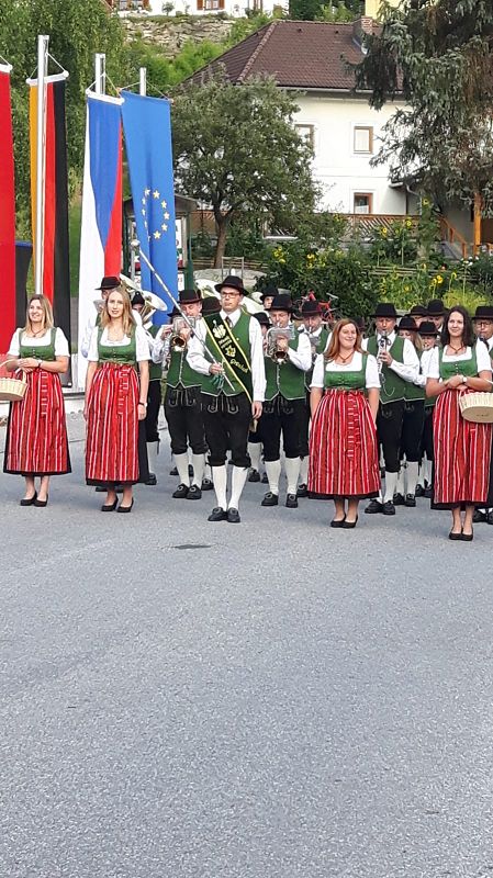 Schon am Freitag ging es zum Umzug, der für österreichsiche Verhältnisse kurz ausfiel. Blasmusik empfing dann alle Gäste in der Festhalle, die sonst als Eisstockhalle und Partyhalle dient.