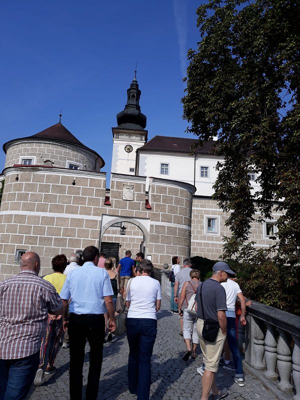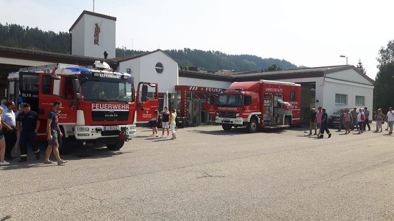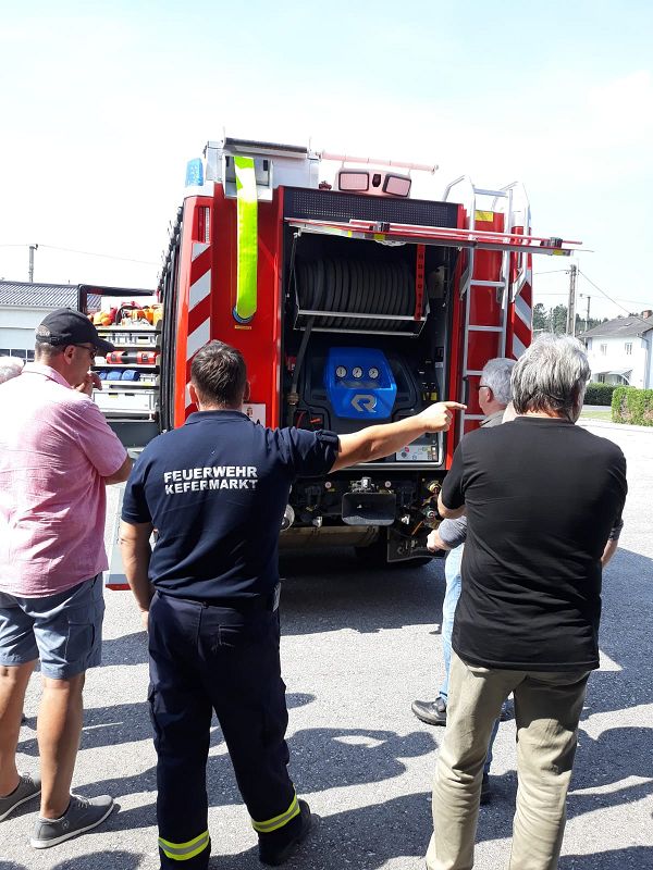 Am nächsten Morgen sind wir zum Schloss Weinberg nach Kefermark aufgebrochen. Ein Schloss in privater Hand und doch vom Land finanziert, nachdem eine unzählige Zahl Kefermarker Bürger das Schloss vor dem Verfall gerettet hatten. Eine sehr interessante Geschichte mit nicht ganz erfreulichen Erinnerungen, auch an die russische Besatzungsmacht. Nach Kaffe und Kuchen im Schloss besuchten wir die Feuerwehr Kefermarkt.