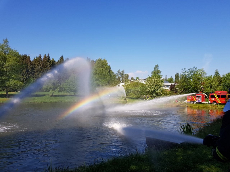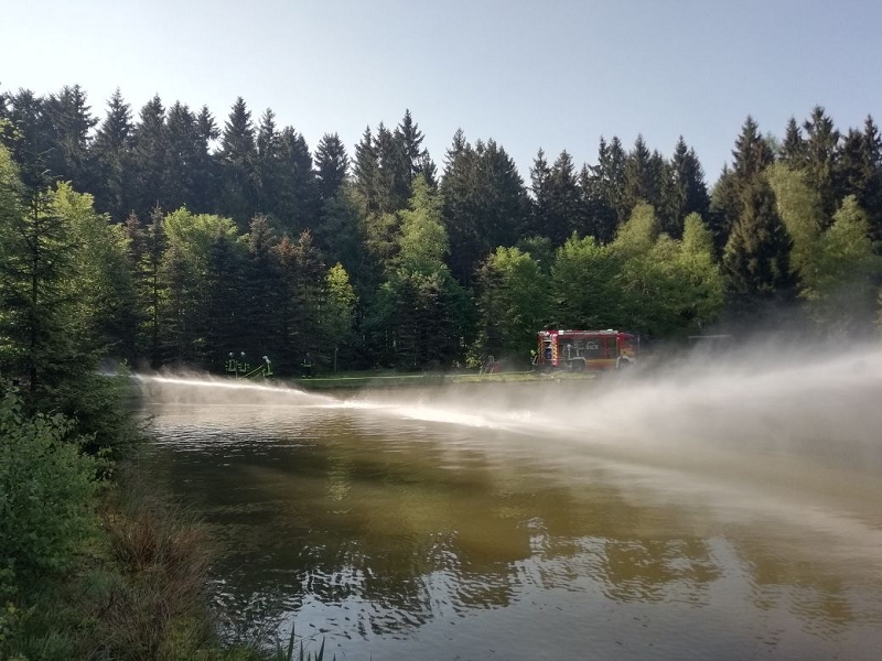 Ein gelungener Einsatzdienst für alle, mit viel neuem Sauerstoff im Fischereigewässer des örtlichen Angelvereins. So haben alle was von dieser Übung!