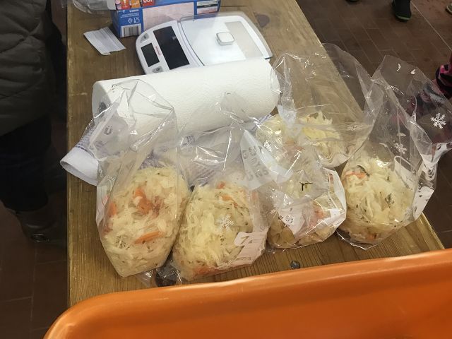 Danach machte unser Bürgermeister Ralf Kretzschmann mit seiner Frau Sigrid das Sauerkrautfass auf und portionierte es in Pfundbeutel für alle Kinder. Das Kraut hatten die Kid`s am Nicolaustag im Rathaus geschnitten und eingestampft. Nun konnte es jeder, gut durchgezogen, mit nach Hause nehmen! Eine tolle Idee!