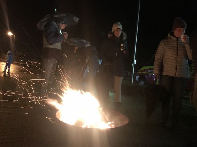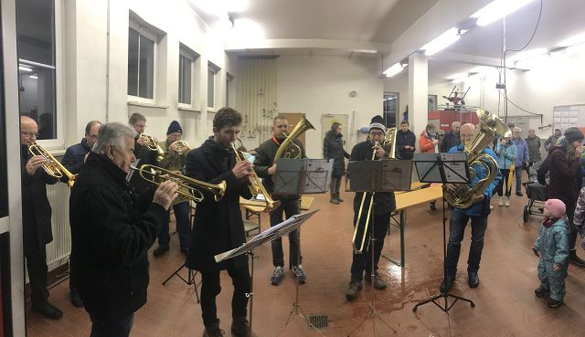 Die Bläser des Posaunenchors der landeskirchlichen Gemeinschaft spielte stimmungsvolle Weihnachtsmusik und wurden nur ab und zu vom Martinshorn des Feuerwehrautos gestört, welches seine stolzen Mitfahrer eine Runde durch unser Dorf fuhr! Und die Schlange der Interessierten Kinder riss einfach nicht ab, obwohl alle im Regen standen.