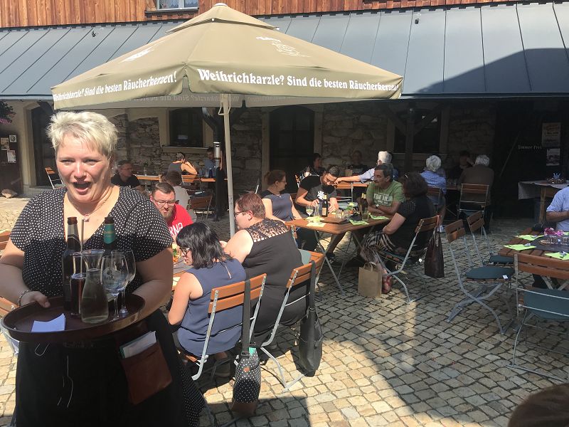 Es ist ein Familienunternehmen, dass zeigte sich auch im Innenhof, wo der Chef noch selbst mit allen Gästen ins Gespräch kommt und stolz berichtet, dass all seine 6 Kinder im Unternehmen arbeiten. So haben wir uns auch gefühlt- wie zu Hause- bei leckerem Essen aus der "Lefflstub" und selbstgemachtem Eis. Nach einem kurzen Abstecher in den Laden der Neudorfer Likörmanufaktur ging es dann wieder gen Heimat.