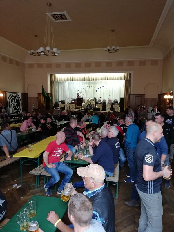 Die Grünbacher Delegation aber schon, auch wenn die Bildqualität etwas anderes vermuten lässt. Nunmehr schon das dritte Jahr ist der Grünbacher Feuerwehrverein Gast im Alten Schloß zu Erlbach um die KIRWE 2019 gemeinsam mit vielen anderen Kimesfans zu beschließen. Rein kommt man da nur mit lange vorbestellten Karten- was für ein Wahnsinn an einem Montag Morgen. Da ruhen sich die Grünbacher zu ihrer Kirmes eigentlich aus, um am Abend noch einmal den Wahnsinn enden zu lassen. Und so mancher Erlbacher ist bestimmt auch dabei!