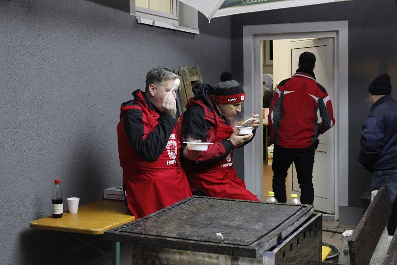 Kulinarisch war alles da, was an einem solchen Tag gewünscht wird. Vom Glühmout, über den heißen Bombardino mit Schlagsahne, von der Knutfest-Roster, bis zur Soljanka fehlte es an nichts. Und auch das Böhmische Bier, gesponsort von unserem Vereinsmitglied Bernd Jakob, passte gut zum Winterabend ohne Schnee!