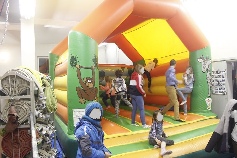 Noch ehe sich die Eltern versahen, waren die Kinder aber weg! Wohin - wenn es keine Eisbahn gab? Es ging zur Hüpfburg in das Feuerwehrhaus! Eine klasse Idee der Feuerwehrverantwortlichen, das fehlende Aktionsangebot im Outdoorbereich durch die Hüpfburg zu kompensieren! Zum Teil barfüßig sprangen und hüpften die Kids bis zur totalen Erschöpfung und kamen oft schweißgebadet, um sich bei den Eltern zu melden.